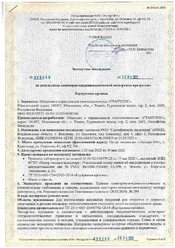 Гранулят из синтетического каучука. Входит в состав бесшовных покрытий на детских и спортивных площадках. Безопасный для здоровья человека материал. Сохраняет яркость цвета на протяжении всего срока эксплуатации — не менее 10—15 лет.